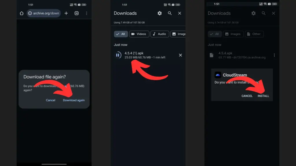 - Open your File Manager and go to the Downloads folder. Locate the CloudStream APK file you just downloaded.