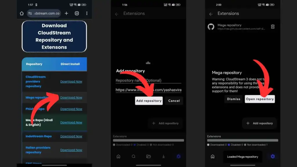 - Tap the ‘Open Repository’ button when it appears to add the repository into CloudStream’s library.